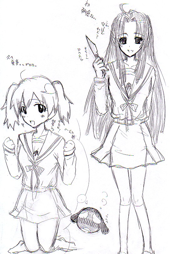 突っ込むわよ?はキョンに言ってます。朝キョン!ナイフは消失の表紙みながら描きました。適当に。適当すぎたともかず