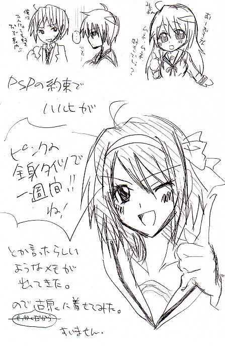 古泉がみくるの位置とか恐ろしいですね。その割には結構楽しんで描きましたけどね!